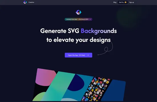 Use Creatica to quickly generate vector backgrounds. Choose from preset color palettes or customize your own. Finished backgrounds are downloadable as SVG or PNG.