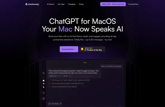 ThinkBuddy is an AI-powered assistant for Mac. It aims to improve productivity by creating an interface between MacOS and ChatGPT.