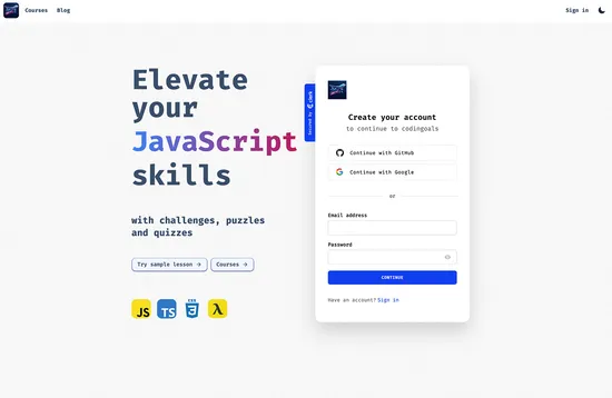 Codingoals learning platform concentrates on JavaScript, with lessons both for beginners and more experienced coders who want to get in a bit of practice in a sandbox environment.