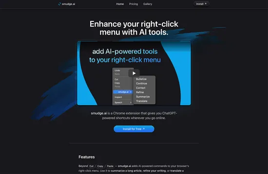 Smudge.ai is a chrome extension that adds ChatGPT shortcuts to the browser right-click menu. There are a set of 16 built-in commands, or you can create your own.