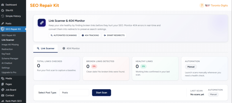 SEO Repair Kit is a WordPress plugin that focuses on technical SEO health, automating scans and fixes that would otherwise require multiple tools or manual checks. With SRK, you can improve your site’s performance and search visibility without needing advanced SEO knowledge.