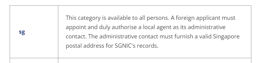 The administrative contact Singapore postal address requirement might be an issue if your located outside Singapore but since most of the readers of this article will most likely be based in Singapore, you shouldn’t have any issues fulfilling the .sg domain requirements.