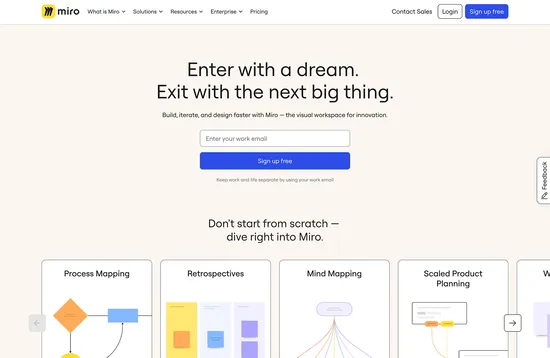 Miro is an interactive whiteboard that is excellent for the ideation phase of a design project. When once you might have walked into a kick-off meeting carrying a notebook, these days you just need your Miro credentials. Miro comes with pre-built templates, so even if you start from scratch, you can use best practices from the off.
