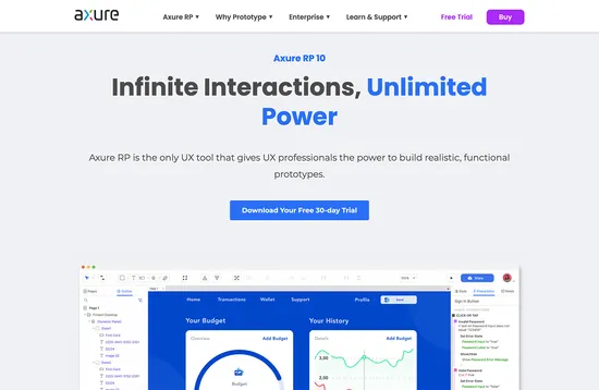 Axure RP is an advanced prototyping solution for apps and complex websites. It is a good solution if you need to plan high-level interactions that depend on conditional logic. Axure RP allows you to create UX documentation and wireframes, but it’s best suited to large teams in which coordinated development is essential.