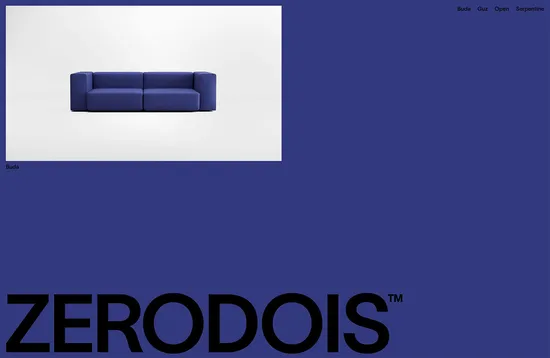 Reflecting the simple shapes of its products, Zerodois’ site is very minimal. The product pages are split in two, with a horizontal scrolling top section, which allows you to see different configurations while the information section stays in place.