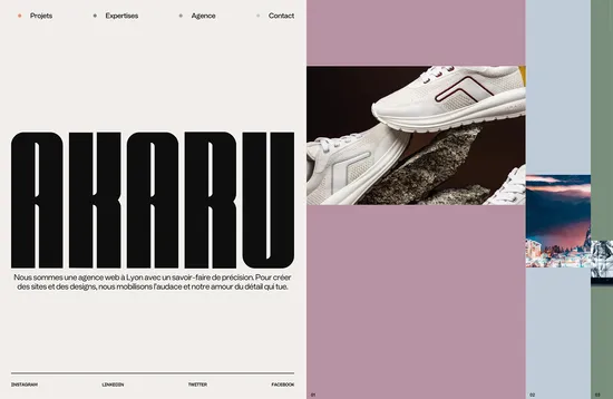 The blend of horizontal and vertical scrolling, along with scaling on Akaru’s home page, creates a pleasing, almost circular effect in places.