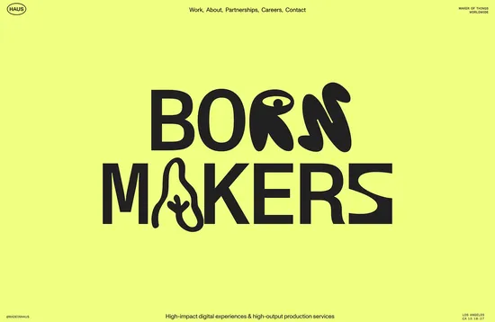Haus digital creative agency succeeds in adding character to its site by making good use of fun, hand-drawn lettering, and randomly scattered images.