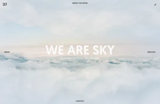 Sky describes itself as a brand elevation studio. This is reflected in the website by images of clouds, and faded blue backgrounds coupled with a simple, slightly rounded font. The ‘work’ menu is a nice feature.