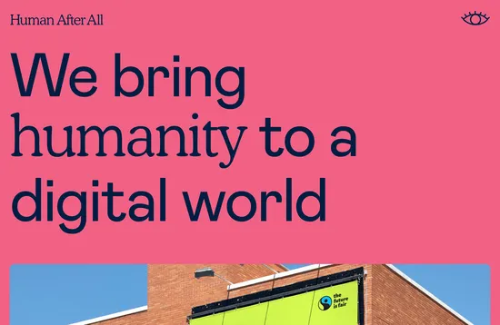 Human After All design studio has opted for a clean style softened by using dark blue for text instead of black, rounded corners, hand-drawn, simple illustrations, and a reassuring pink. The result is professional but personable.