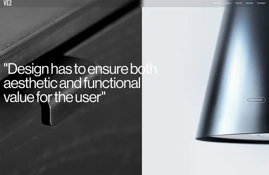 This site for design studio VE2 is very polished overall, but some details really shine. The ‘next product’ button and consequent transition are particularly pleasing.