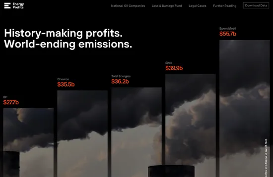 The agency behind the Energy Profits site was aiming for hard-hitting and compelling, and they have certainly achieved that. Clean, but quite heavy white text on black with fiery accents, coupled with striking images, creates a strong impression.