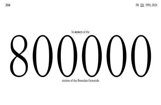 This is an online memorial marking the 30th anniversary of the Rwandan genocide. The design is simple, using only black and white, and allowing the main focus to be on the faces of the people photographed.