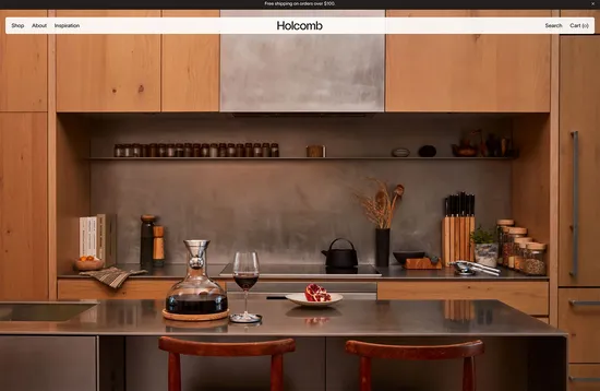 Holcomb Studio offers a limited range of carefully designed homewares. The online store reflects this with its use of rounded corners and a palette of warm greys.