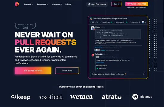 Pullpo Channels accelerate your code reviews with AI-powered Slack channels. AI checks the code changes, summarises it for you, and even schedules reminders to update the codebase. There’s even direct GitHub integration.